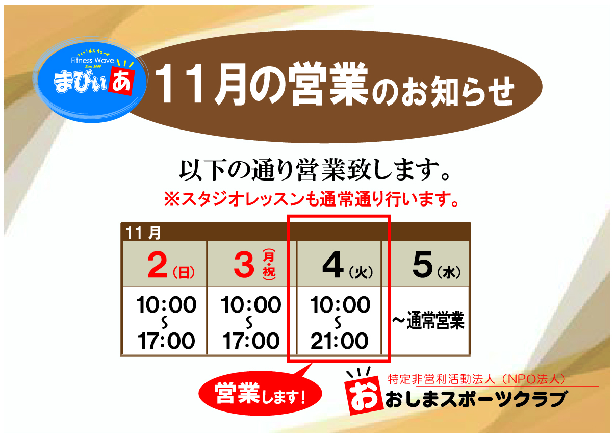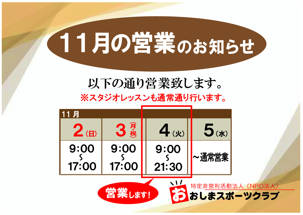 11月の営業のお知らせ